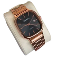 A bold twist on elegance, this Cassiio Quartz watch features a deep black dial encased in a polished rose gold-tone body. Designed with minimalistic hour markers and a compact date window, it seamlessly balances style and simplicity. The sturdy metal strap and refined square case shape add a contemporary touch, perfect for everyday wear or evening sophistication