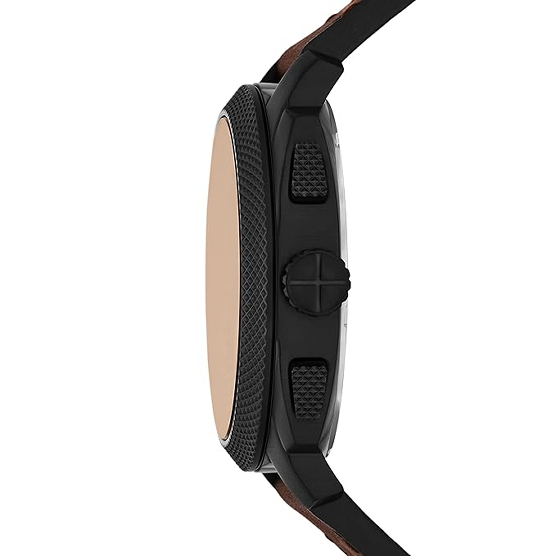 Foossiil Men's Chronograph Black Dial Watch with Brown Leather Strap